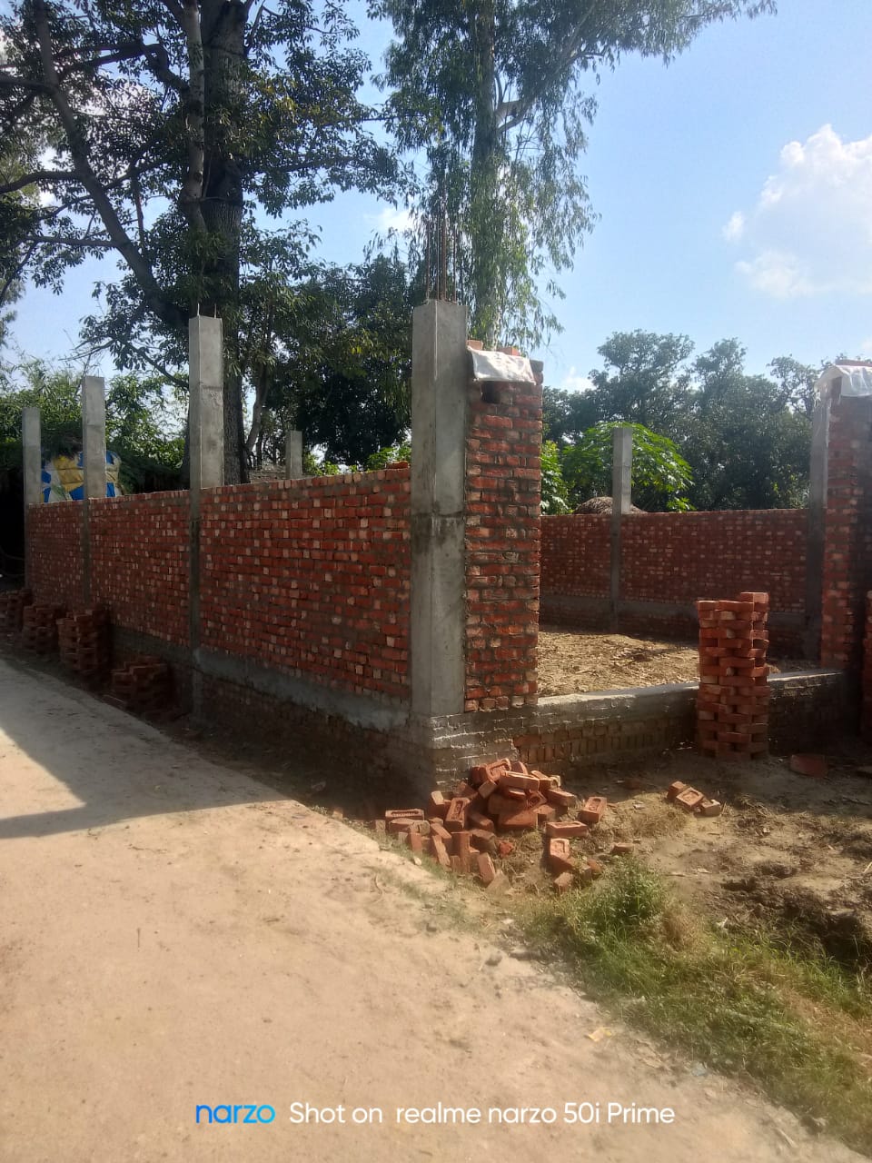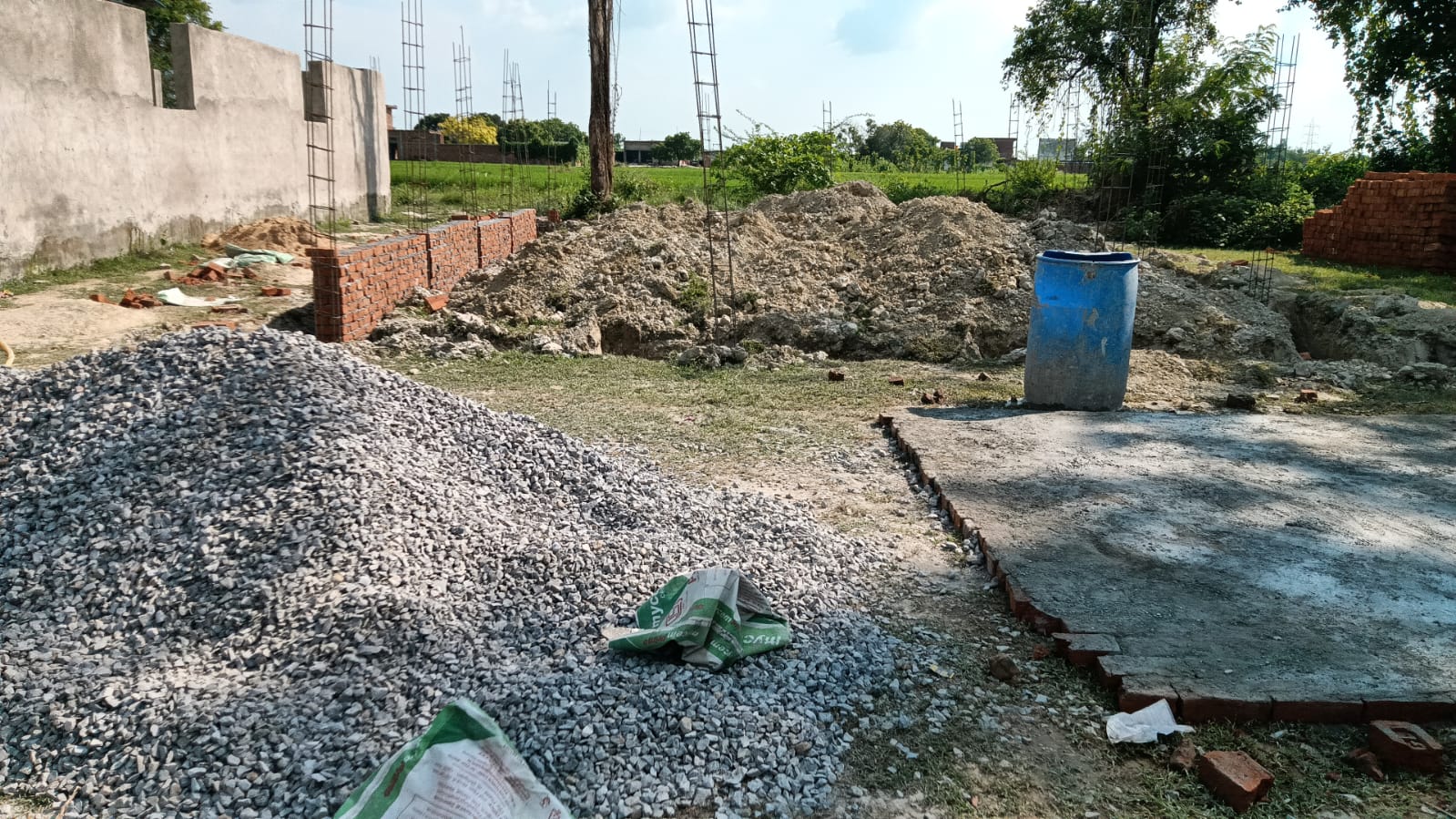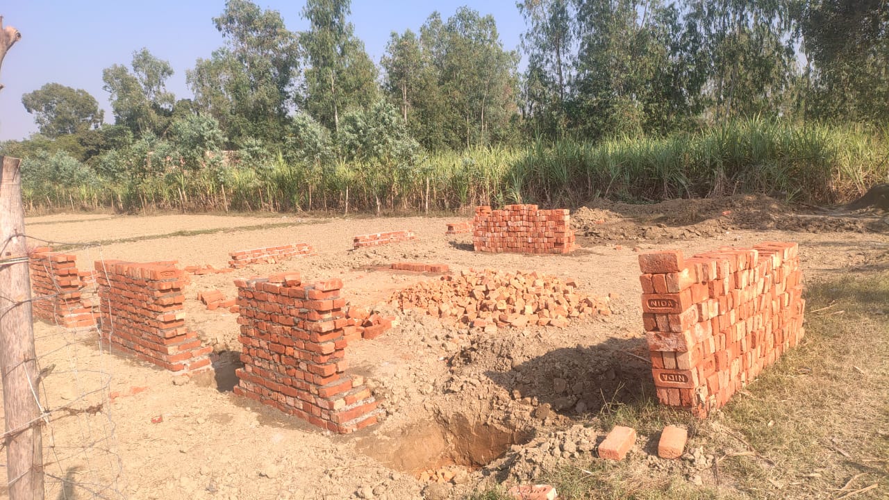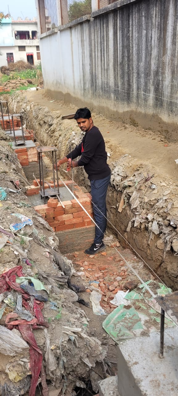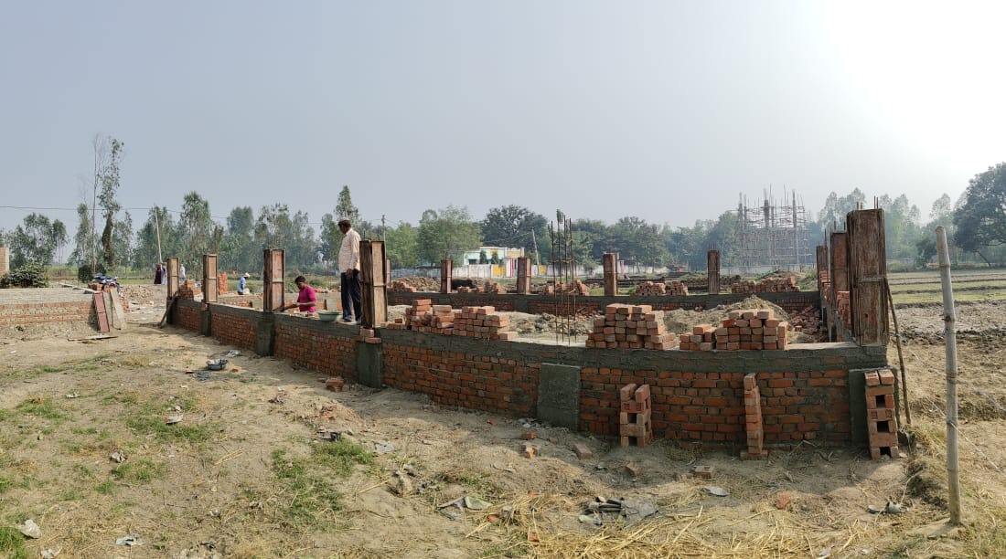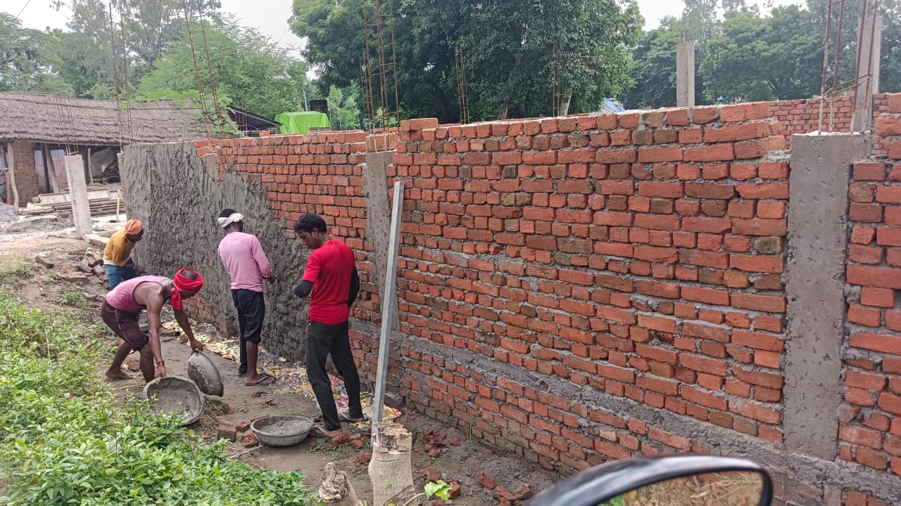 निर्माण कार्य प्रगति पर है चिनाई कार्य चल रहा है