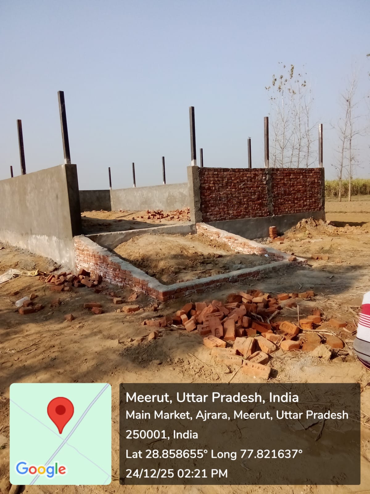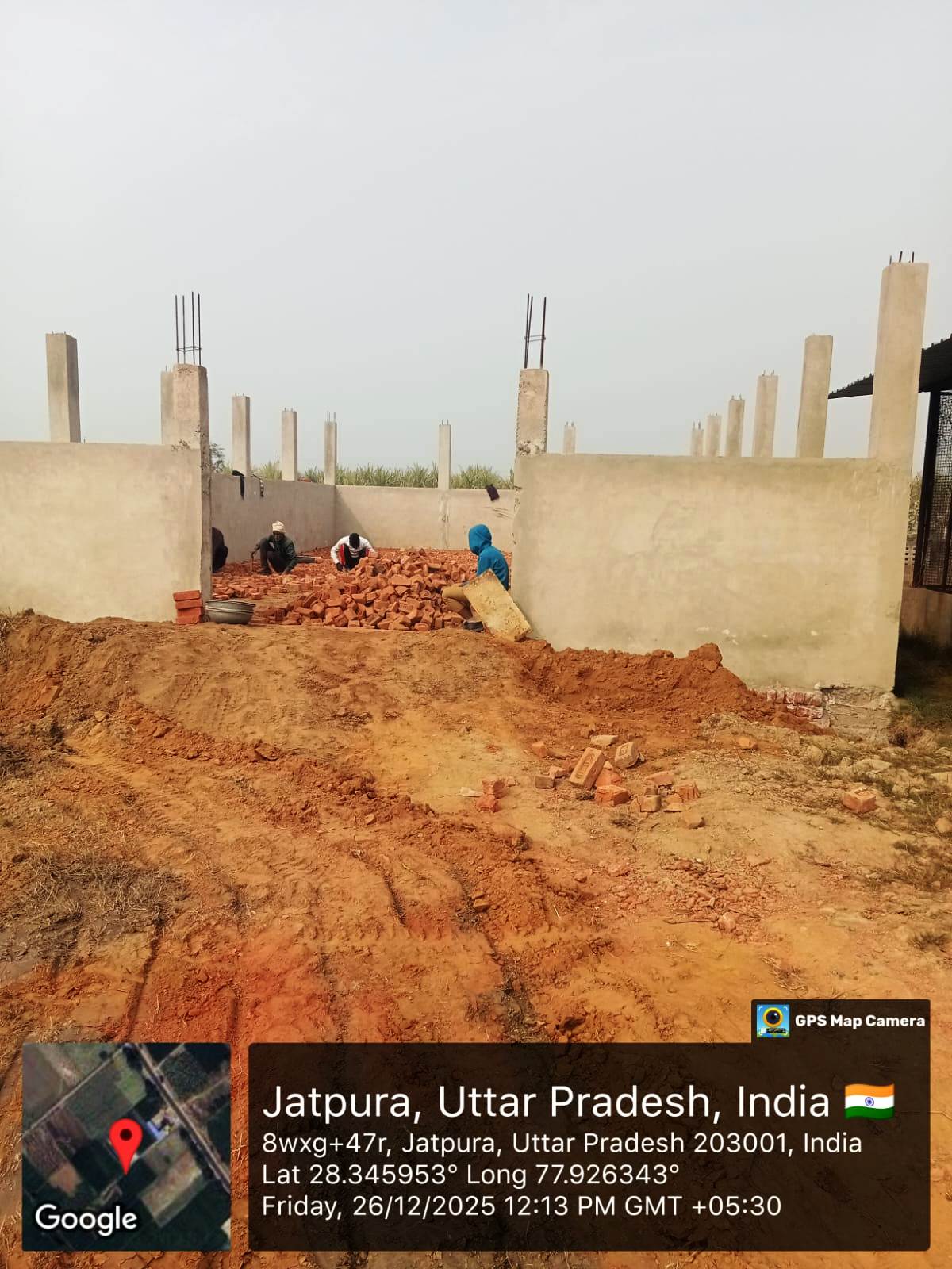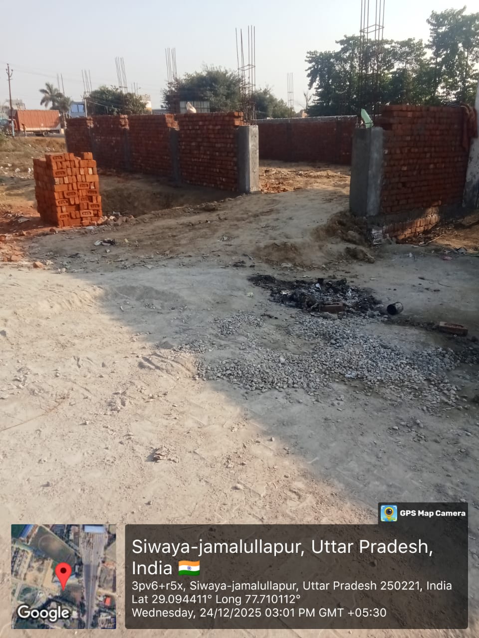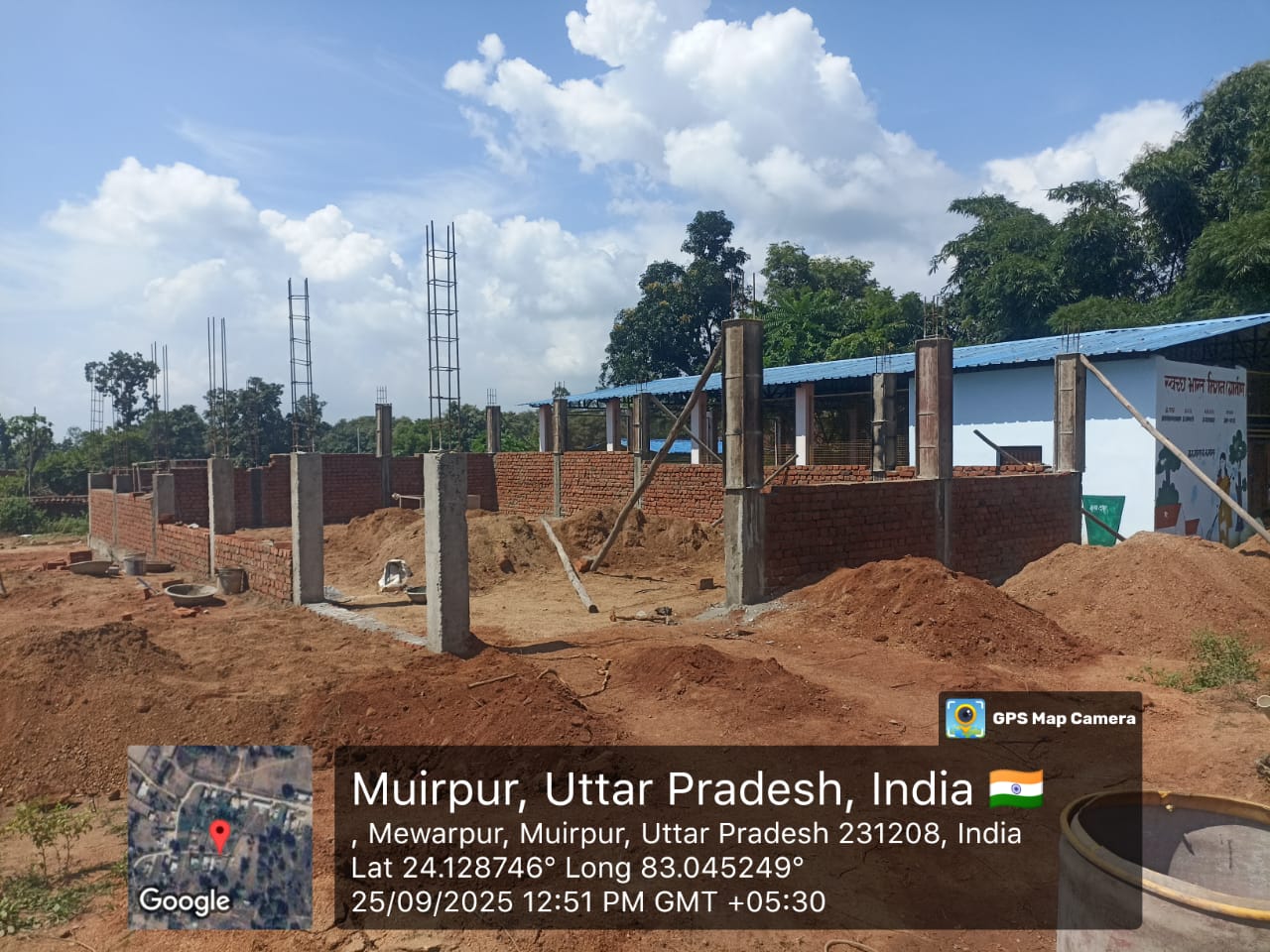 निर्माण कार्य प्रगति पर है चिनाई कार्य चल रहा है