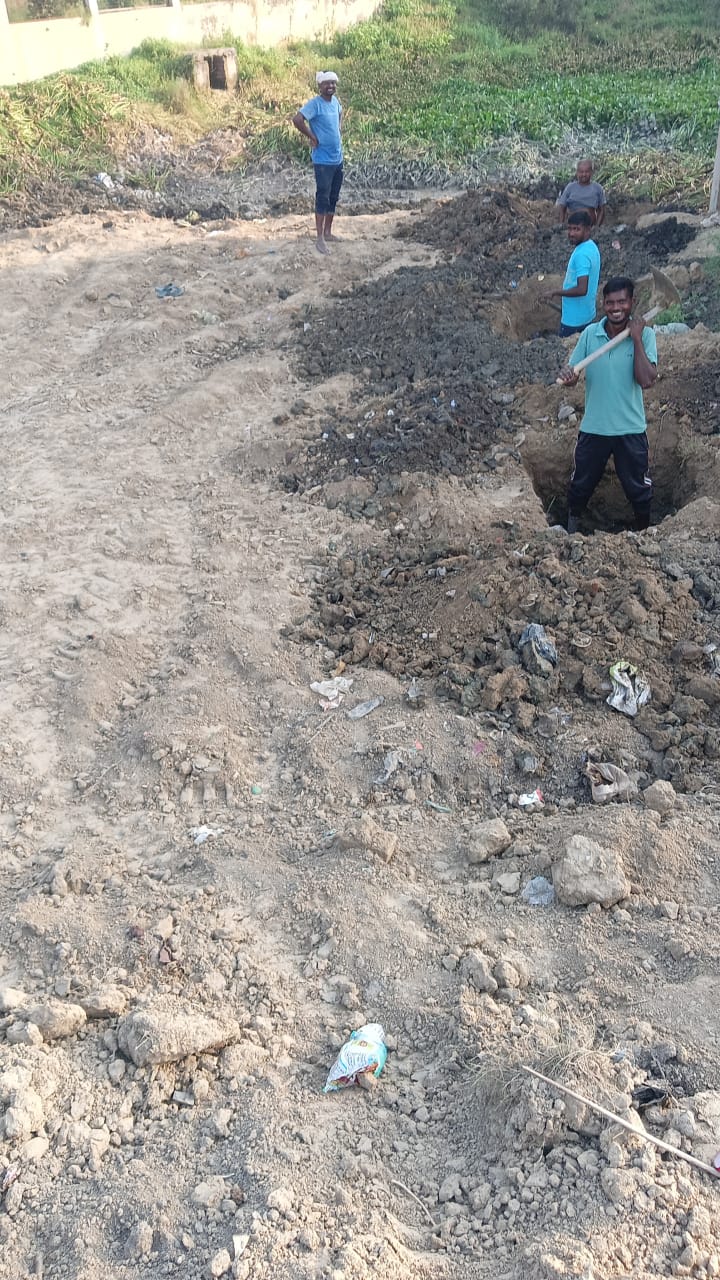 पानी भरा होने के कारण निर्माण कार्य प्रारम्भ नही क्या जा सका था नीव की खुदाई कार्य पररम्भ करा दिया गया है